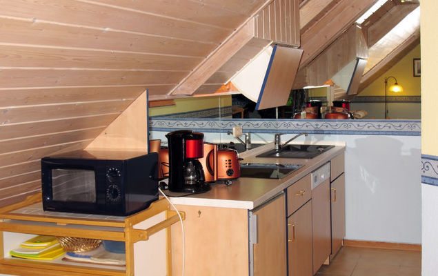 "Zeit zum Träumen II", appartement 3-kamers 75 m2, op de bovenste verdieping. Comfortabel en mooi ingericht: woon-/eetkamer met afgeschuinde daken met eettafel, Sat-TV en stereo-installatie. Uitgang naar het balkon. 2 2-pers. kamers met afgeschuinde daken. Kookhoek (afwasmachine, 4 keramische glas kookplaten, broodrooster, waterkoker, magnetron, elektrische koffiemachine). Badkamer, aparte WC, dubbele wastafels. Gas-verwarming. Balkon. Balkonmeubilair. Ter beschikking: kinderstoel, kinderbed. Internet (Internet (WiFi), gratis). Parkeerplaats (overdekt, 1 Auto). 2 huisdieren/honden toegestaan.