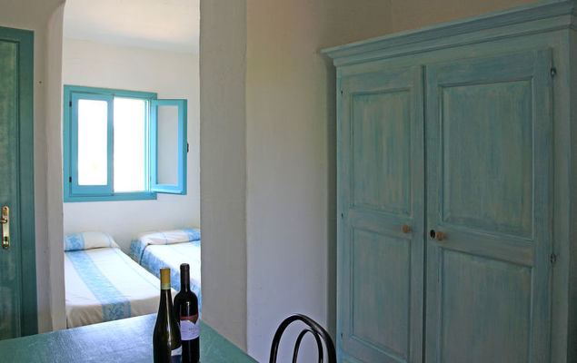 "Lu Nibareddu (PTA102)", appartement 2-kamers 35 m2. Eenvoudig ingericht: woon-/slaapkamer met 2 bedden, eettafel, Sat-TV en air-conditioning. 1 kamer met 2 slaapplaatsen. Kookhoek (4 kookpitten (vlammen)). Douche/WC. Balkon of terras. Balkonmeubilair. Ter beschikking: kinderbed.