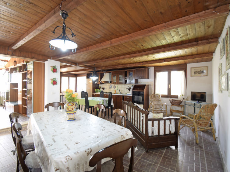 Huis 4-kamers 130 m2. Eenvoudig en doelmatig ingericht: groot woon-/eetkamer met 1 slaapplaats en TV (Flatscreen TV), air-conditioning. Uitgang naar het terras. Woonkamer met open haard. Uitgang naar het terras. Kleine doorgangskamer met 1 2-pers bed. 1 kleine 2-pers. kamer. 1 kleine kamer met 1 bed. Kookhoek (4-pits kookplaat, oven, broodrooster, magnetron, diepvriezer) met eettafel. Uitgang naar het terras. Douche/bidet/WC. Houtverwarming (extra), air-conditioning, heteluchtverwarming (extra), boiler (80 liter). Verwarming alleen beschikbaar van 01.12. tot 31.03. Groot terras 100 m2 gedeeltelijk overdekt, 2 terrassen 25 m2. Terrasmeubelen, barbecue. Beperkt uitzicht op zee. Ter beschikking: wasmachine, strijkijzer, klamboe, kinderstoel, kinderbed tot 2 jaar, haardroger. Internet (Internet (WiFi), gratis).