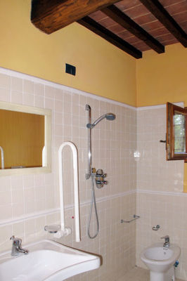 Landhuis "Francigena", omgeven door bomen en velden. 9 appartementen in de woning. 6 km van het centrum van Castelfiorentino, 3 km van het centrum van Castelnuovo d'Elsa, 30 km van het centrum van San Gimignano, 100 km van zee. Voor medegebruik: terrein 20.000 m2, tuin met gazon en bomen, openluchtzwembad (15 x 9 m, 100 - 140 cm diepte, seizoensgebonden beschikbaarheid: 01.Apr.-31.Okt.). Buitendouche, terras, tuinmeubelen, barbecue. In het huis: wasmachine, droger (voor medegebruik, extra). Overdekte parkeerplaats (voor 12 auto's) op het terrein. Winkel 3 km, supermarkt 6 km, station "Castelfiorentino" 6 km, zandstrand "Cecina Mare" 100 km. Let op: auto noodzakelijk.