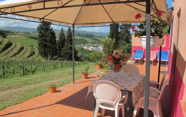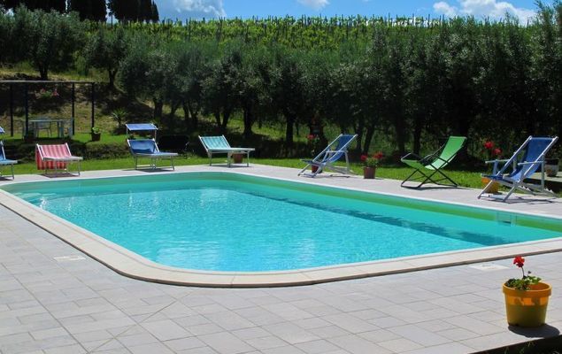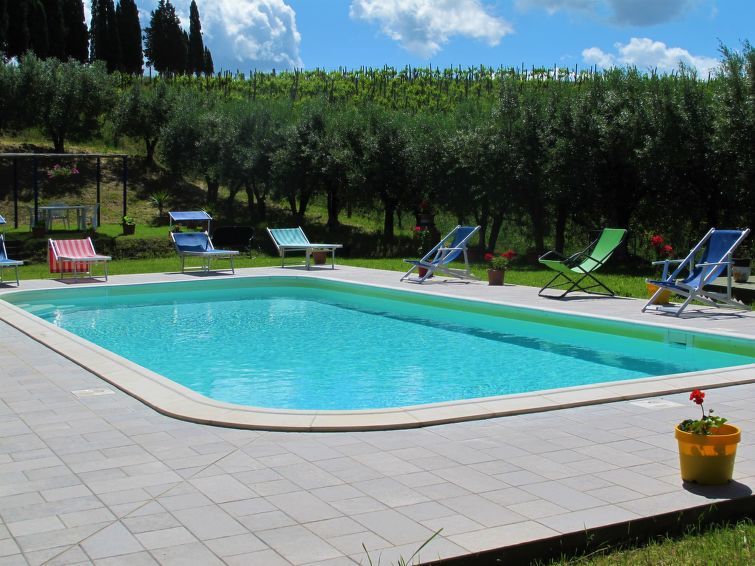 Certaldo: Gezellig op het wijngoed landbouwbedrijfje "Podere Conte Francesco", omgeven door bomen, velden en wijngaarden. 7 appartementen in de woning. 7 km van het centrum van Certaldo, 13 km van het centrum van San Gimignano, 57 km van het centrum van Firenze, geïsoleerde, zonnige, verhoogde ligging tegen een helling, 80 km van zee, 80 km van het strand, te midden van groen. Voor medegebruik: wild terrein met planten en bomen, wilde tuin, weide, boomgaard, openluchtzwembad (10 x 5 m, 150 cm diepte, seizoensgebonden beschikbaarheid: 02.Mei.-03.Okt.). Buitendouche, tuinmeubelen, onderhoud zwembad door de eigenaar/tuinman. In het complex: Internet (WiFi), wasmachine (voor medegebruik, extra). 1.5 km lange toegangsweg (onverharde weg). Parkeerplaats op het terrein. Levensmiddelenwinkel 3 km, supermarkt 7 km, restaurant 7 km, bar 3 km, station "Certaldo" 7 km, zandstrand "Cecina Mare" 80 km, overdekt zwembad 7 km. Golfterrein (18 holes) 27 km, tennis 7 km, manege 3 km. Attracties in de buurt: Siena 45 km, Volterra 40 km, Pisa 83 km. Let op: auto noodzakelijk. Baby uitrusting op aanvraag (incl.). De eigenaar woont op hetzelfde terrein. De woningen kunnen onderling van inrichting verschillen.