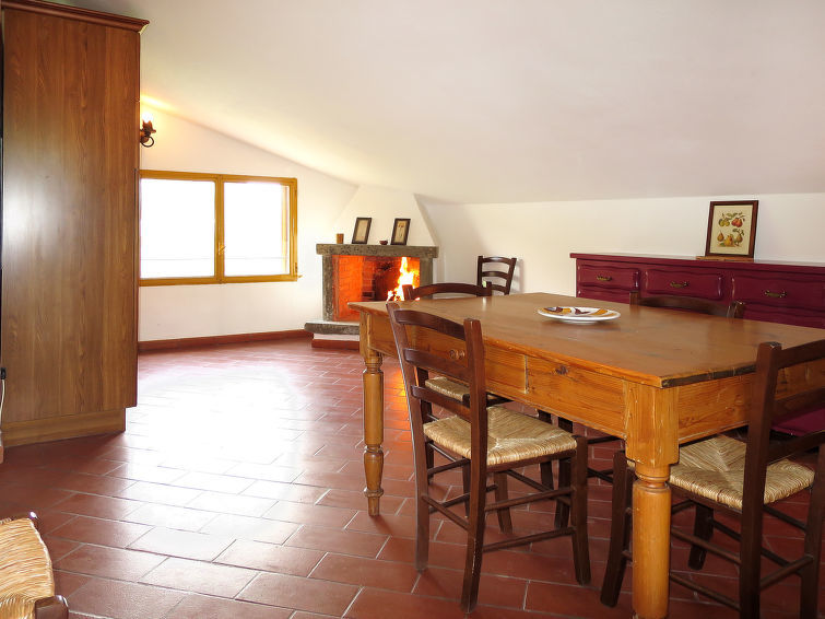 "Conte Francesco II", huis 6-kamers 120 m2 op 2 verdiepingen. Het objekt is geschikt voor 8 volwassenen. Doelmatig en rustiek ingericht: woon-/eetkamer met open haard en eettafel. 1 2-pers. kamer met 1 bed (160 cm). 1 kamer met 2 bedden (80 cm). Kookhoek (4-pits kookplaat, diepvriezer). Douche/bidet/WC. Bovenverdieping: (buitentrap) woonkamer met afgeschuinde daken met open haard. 1 2-pers. kamer met 1 bed (160 cm). 1 2-pers. kamer met 2 bedden (80 cm). Kookhoek (4-pits kookplaat, diepvriezer). Douche/bidet/WC. Elektrische verwarming. Natuurstenen vloeren. Terras 24 m2, terras. Terrasmeubelen, barbecue, bergruimte. Uitzicht op het landschap. Ter beschikking: kinderbed tot 2 jaar. Parkeerplaats nr. 2. Let op: geschikt voor families. Niet rokers woning. Maximaal 1 huisdier/hond toegestaan. Geen interne verbinding tussen de aparte wooneenheden. Geen interne verbinding tussen de etages.