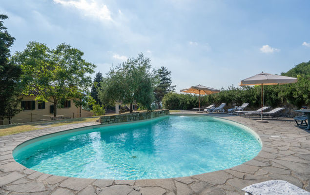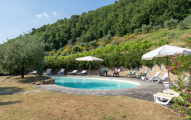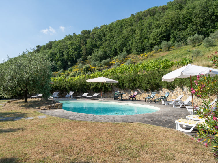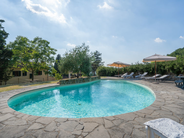 Landhuis "Il Podere", 260 m boven zeeniveau. 2 huizen in de plaats. 1.4 km van het centrum van Dicomano, 9 km van het centrum van Vicchio, 38 km van het centrum van Firenze, rustige, zonnige ligging op een heuvel, 30 km van het meer, te midden van groen. Voor alleengebruik: tuin 3.500 m2, openluchtzwembad (10 x 5 m, 150 cm diepte, 01.05.-30.09.). Buitendouche, tuinmeubelen, barbecue. In het huis: receptie, Verwarming ter plaatse te betalen (01.11.-15.04.), verwarming alleen beschikbaar van 01.11. tot 15.04.. Toegangsweg tot aan het huis (150 m onverharde weg). Parkeerplaats op het terrein. Winkel 1.4 km, levensmiddelenwinkel 1.4 km, supermarkt 1.4 km, restaurant 900 m, meer Bilancino 30 km. Golfterrein 19 km. Attracties in de buurt: Borgo San Lorenzo 17 km, Scarperia 31 km, Barberino di Mugello 37 km, Vallombrosa 38 km.