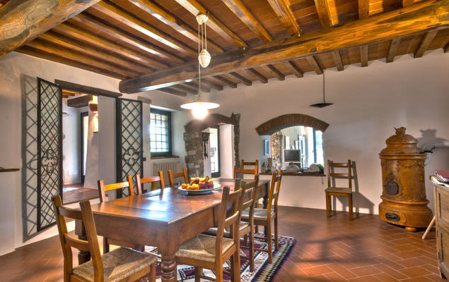 Sieci 19 km van Firenze: Onafhankelijke villa en dependance met in totaal 9 kamers (7+2), 455 m2 (400+55 m2). Het hoofdgebouw was in de middeleeuwen een uitkijktoren. Gelegen op een hoogte van 400 m, op 8 km van het dorp Sieci en op 19 km van Florence. Het geheel is gerenoveerd en ingericht met oog voor detail, met een combinatie van antieke en landelijke meubelen. Geïsoleerd en panoramisch gelegen, omringd door een terrein met olijfbomen, bossen en velden en met een subliem uitzicht op de glooiendeheuvels rondom Florence. Aangename gemeubileerde buitenruimtes, met pergola en pizzaoven, een ideale plek om de maaltijd te nuttigen in de openlucht. Parcoursen in het bos met meertje. Treinverbinding met Florence. Gemakkelijk bereikbaar vanaf de luchthavens van Pisa en Florence. Centrale verwarming. Op aanvraag (extra): tussentijdse schoonmaak. Landgoed "Cafaggio di Sopra", vrijstaand. 8 km van het centrum van Sieci, 19 km van het centrum van Firenze, rustige, zonnige, verhoogde ligging op een heuvel. Voor alleengebruik: terrein 4 ha, tuin gazon, openluchtzwembad (6 x 12 m, 150 cm diepte, 14.03.-17.10.). Tafeltennis, tuinmeubelen, barbecue, kinderspeelplaats. In het huis: internetaansluiting, verwarming alleen beschikbaar van 01.11. tot 15.04.. Toegangsweg (1 km onverharde weg). Parkeerplaats. Winkel 8 km, restaurant 2 km, bushalte 4 km, station "Sieci" 8 km. Manege 2 km. Attracties in de buurt: Luxury Outlet The Mall 20 km.