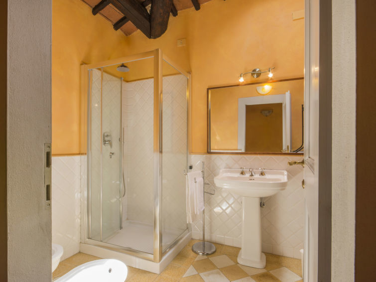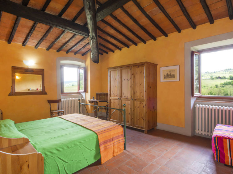 Landhuis "Selvapiana", eenzijdig aangebouwd. 3 huizen in de plaats. 2 km van het centrum van Greve in Chianti, 20 km van het centrum van Firenze, op een heuvel, te midden van groen. Voor medegebruik: wilde tuin. Voor alleengebruik: tuin (omheind) met gazon en bloemen. Tuinmeubelen, barbecue. Verwarming ter plaatse te betalen (15.11.-01.04.). Parkeerplaats bij het huis. Winkel 2 km, supermarkt 2 km, winkelcentrum 2 km, restaurant 2 km, bushalte 1 km. Manege 5 km. Let op: hoofdstraat 100 m van het huis.
