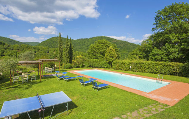 Zeer kindvriendelijk, gezellig vakantiepark "Il Borgo", omgeven door wijngaarden. 4 huizen in de woning. 8 km van het centrum van Greve in Chianti, 32 km van het centrum van Firenze, 55 km van het centrum van Siena. Voor alleengebruik: openluchtzwembad (6 x 14 m, 80 - 220 cm diepte, 30.04.-01.10.). Tafeltennis, barbecue. In het complex: internetaansluiting, Internet (WiFi), Verwarming ter plaatse te betalen, verwarming alleen beschikbaar van 01.11. tot 15.04.. Schoonmaak op verzoek (extra). Parkeerplaats op het terrein. Winkel 3 km. Golfterrein (18 holes) 9 km, tennis 9 km, manege 9 km. Attracties in de buurt: Panzano in Chianti 17 km, Radda in Chianti 21 km, San Casciano in Val di Pesa 23 km, Gaiole in Chianti 29 km, San Gimignano 55 km.