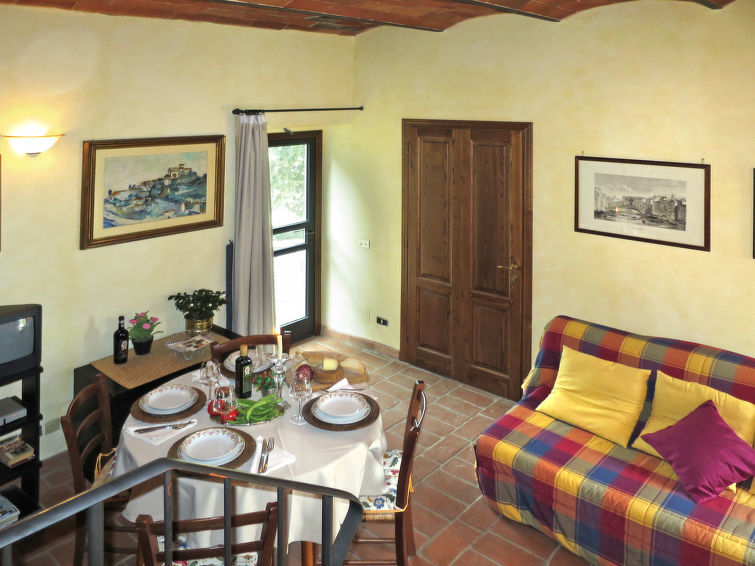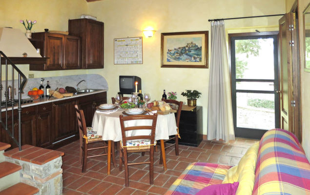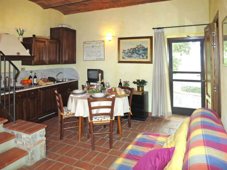 "San Rocco", halfvrijstaand huis 3-kamers 65 m2 op 2 verdiepingen. Doelmatig en rustiek ingericht: woon-/slaapkamer met 1 divanbed, eettafel en Sat-TV. Uitgang naar het terras. Kookhoek (4 kookpitten (vlammen), elektrische koffiemachine). Bovenverdieping: 1 kamer met 1 2-pers bed (160 cm), air-conditioning. 1 kamer met 1 bed (80 cm), 1 2-pers bed (160 cm), air-conditioning. Douche/WC. Gas-verwarming. Terras. Terrasmeubelen. Mooi uitzicht op het landschap. Ter beschikking: Internet (Internet (WiFi)). Let op: niet rokers woning. Maximaal 1 huisdier/hond toegestaan. Privé ingang.