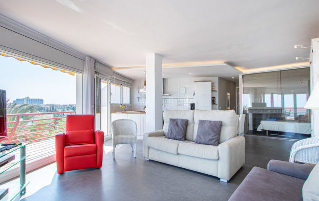 Appartement 1-kamer 50 m2, op het zuidwesten gelegen. Licht, gerenoveerd, modern en gezellig ingericht: woon-/slaapkamer met 1 divanbed en 1 2-pers divanbed (140 cm, lengte 190 cm), eettafel, Sat-TV, air-conditioning en heteluchtverwarming. Uitgang naar het terras, op het zuiden en op het westen. 1 kamer met 1 2-pers bed (140 cm, lengte 190 cm). Open keuken (oven, afwasmachine, 4 keramische glas kookplaten, magnetron, diepvriezer, elektrische koffiemachine). Douche/WC. Groot terras 17 m2. Terrasmeubelen. Mooi panoramazicht op zee. Ter beschikking: wasmachine, strijkijzer, kinderstoel, kinderbed, haardroger. Internet (Internet (WiFi), gratis). Let op: niet rokers woning. 1 klein huisdier/hond toegestaan. TV alleen FR. HUTG017561
