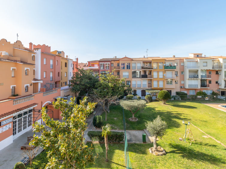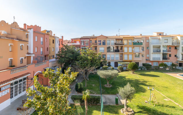 Groot, gezellig vakantiecomplex "Gran Reserva", van 3 verdiepingen. In het centrum van Empuriabrava, zonnige ligging, in het centrum van de stad, 250 m van zee, 250 m van het strand. In het complex: receptie, restaurant, bar, internetcafé. Winkel, levensmiddelenwinkel 100 m, supermarkt 200 m, winkelcentrum, restaurant, bar, bakkerij 100 m, zandstrand "Empuriabrava" 250 m. Jachthaven 1 km, golfterrein (18 holes) 15 km, tennis 3 km, midgetgolf 50 m, manege 4 km. Attracties in de buurt: Centro Aeródromo y túnel del viento 3 km, Parque Acuático Roses 9 km, Casino y festival de Peralada 12 km, Museo Dalí de Figueres 15 km, Ruïnes de St. Martí de Empúries 21 km, Monasterio de Sant Pere de Rodes 23 km. Let op: Bij deze accommodatie zijn meer vergelijkbare woningen te huur. Object referentie: ES9420.476.34 is gelegen op hetzelfde terrein.