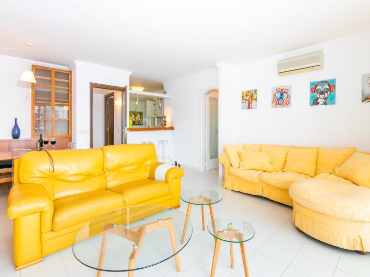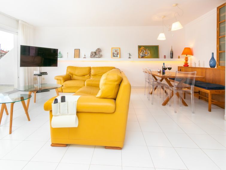 Appartement 3-kamers 106 m2 op de 1e verdieping. Ruim en licht, comfortabel en smaakvol ingericht: woon-/eetkamer met Sat-TV en Digitale TV (Flatscreen TV), DVD, air-conditioning en heteluchtverwarming. Uitgang naar het terras. 1 kamer met 1 divanbed (90 cm), 1 2-pers bed (180 cm), Sat-TV (Flatscreen TV), air-conditioning. Uitgang naar het terras. 1 kamer met 2 bedden (90 cm). Open keuken (afwasmachine, 4 keramische glas kookplaten, combimagnetron) met bar. Douche/WC, aparte WC. Terras. Terrasmeubelen. Zeer mooi uitzicht op het kanaal. Ter beschikking: wasmachine, haardroger. Internet (Internet (WiFi), gratis). Parkeerplaats nr. 1D (overdekt), parkeerplaats nr. 1D (overdekt). Let op: 1 huisdier/hond toegestaan. TV alleen ES, FR, DE. HUTG017533