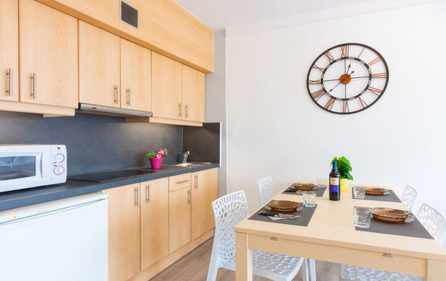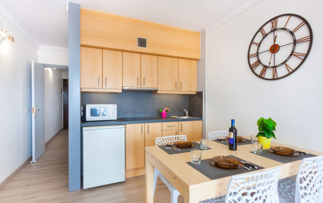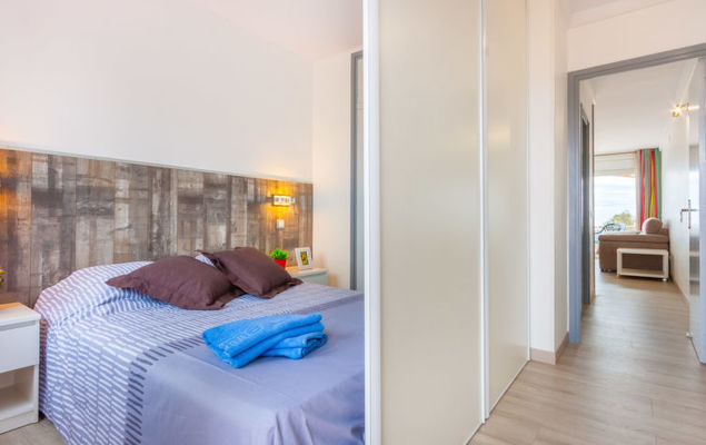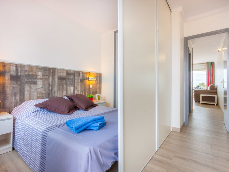 Appartement 2-kamers 32 m2 op de 2e verdieping, op het zuiden gelegen. Volledig gerenoveerd in 2017, modern en smaakvol ingericht: woon-/eetkamer met 1 2-pers divanbed, eettafel, Digitale TV, air-conditioning en heteluchtverwarming. Uitgang naar het balkon, op het zuiden. 1 kamer met 1 2-pers bed. Kleine, open keuken (2 keramische glas kookplaten, magnetron, elektrische koffiemachine). Douche/WC. Air-conditioning. Klein balkon, op het zuiden gelegen. Balkonmeubilair. Mooi panoramazicht op zee. Ter beschikking: wasmachine. Internet (Internet (WiFi), gratis). Parkeerplaats nr. 18. Let op: koelkast zonder vriesvak. 1 huisdier/hond toegestaan. TV alleen FR. HUTG027774