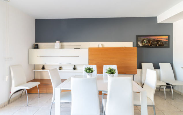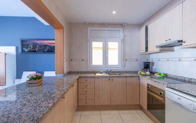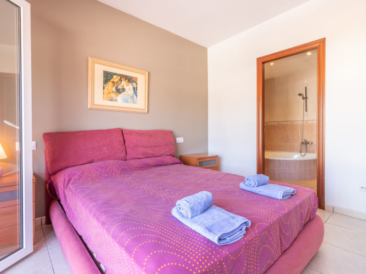 Huis 5-kamers 100 m2 op 2 verdiepingen. Comfortabel en mooi ingericht: woon-/eetkamer met panoramavenster met eettafel, Digitale TV, Flatscreen TV en air-conditioning. Uitgang naar het terras, naar het zwembad. 1 kamer met 1 2-pers bed (150 cm), ventilator. Open keuken (oven, afwasmachine, 3 keramische glas kookplaten, broodrooster, diepvriezer, elektrische koffiemachine). Douche/WC. Bovenverdieping: 1 kamer met 1 2-pers bed (150 cm), bad/bidet/WC en ventilator. Uitgang naar het balkon. 1 kamer met 2 bedden (90 cm), ventilator. 1 kamer met 1 uitschuifbaar bed (2 pers. 2 x 90 cm), ventilator. Uitgang naar het balkon. Douche/WC. Balkon, groot terras. Terrasmeubelen. Beperkt uitzicht op het kanaal. Ter beschikking: wasmachine. Internet (Internet (WiFi), gratis). Parkeerplaats, parkeerplaats, garage. Let op: maximaal 1 huisdier/hond toegestaan. TV alleen ES. HUTG012564