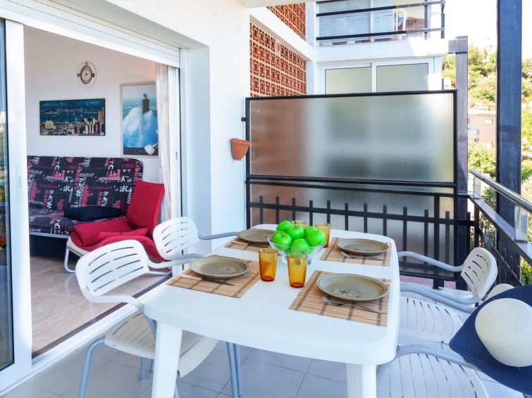 "Les Oranetes", appartement 2-kamers 45 m2, op de tussenverdieping. Doelmatig ingericht: woon-/eetkamer 16 m2 met 1 2-pers divanbed (1 x 135 cm, lengte 190 cm), Digitale TV, Flatscreen TV, air-conditioning en heteluchtverwarming. Uitgang naar het terras. 1 kamer met 1 2-pers bed (1 x 135 cm), air-conditioning en heteluchtverwarming. Keuken (afwasmachine, X keramische glas kookplaten, magnetron, diepvriezer, grill, elektrische koffiemachine). Douche/bidet/WC. Air-conditioning. Terras 12 m2. Terrasmeubelen. Mooi uitzicht op zee, de bergen en het landschap. Ter beschikking: wasmachine. Let op: TV alleen ES, FR. HUTG003315