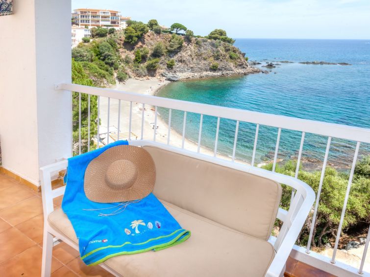 Cau de Llop: Gelegen in de eerste lijn aan het strand. Flatgebouw "Puerto De La Selva". 1 km van het centrum van Llançà, zonnige ligging tegen een helling, 50 m van zee. Trappenweg naar het huis. Winkelcentrum 1 km, restaurant 1 km, kiezelstrand 50 m. Golfterrein 17 km. Groepen jongeren uitsluitend op aanvraag. Let op: Bij deze accommodatie zijn meer vergelijkbare woningen te huur. Directe toegang naar het strand via traptreden.