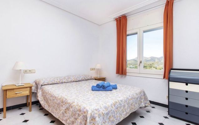 "Dalí I", huis in een rij 3-kamers 115 m2 op 2 verdiepingen, op het noorden gelegen. Ruim, eenvoudig en doelmatig ingericht: woon-/eetkamer, op 2 verdiepingen met eettafel, bar en Digitale TV. Uitgang naar het balkon. Open keuken (oven, 4 keramische glas kookplaten, broodrooster, waterkoker, magnetron, elektrische koffiemachine). Aparte WC. Bovenverdieping: 1 kamer met 1 2-pers bed (1 x 135 cm). 1 kamer met 1 2-pers bed (1 x 135 cm). Uitgang naar het balkon. Bad/bidet/WC. Tuin. Terrasmeubelen, barbecue. Mooi uitzicht op zee, het landschap en de plaats. Ter beschikking: wasmachine, strijkijzer. Internet (Internet (WiFi)). Let op: 1 huisdier/hond toegestaan. TV alleen ES. HUTG012190