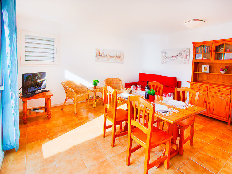 Appartement 3-kamers 65 m2, op de begane grond. Licht, doelmatig en comfortabel ingericht: woon-/eetkamer met 1 2-pers divanbed, Sat-TV en Digitale TV (Flatscreen TV). 1 kamer met 1 2-pers bed. 1 kamer met 2 bedden. Open keuken (3 keramische glas kookplaten, magnetron, diepvriezer, elektrische koffiemachine) met bar. Douche/WC, aparte WC. Terras. Terrasmeubelen. Ter beschikking: wasmachine. Internet (Internet (WiFi), gratis). Let op: TV alleen ES, DE. HUTG007524