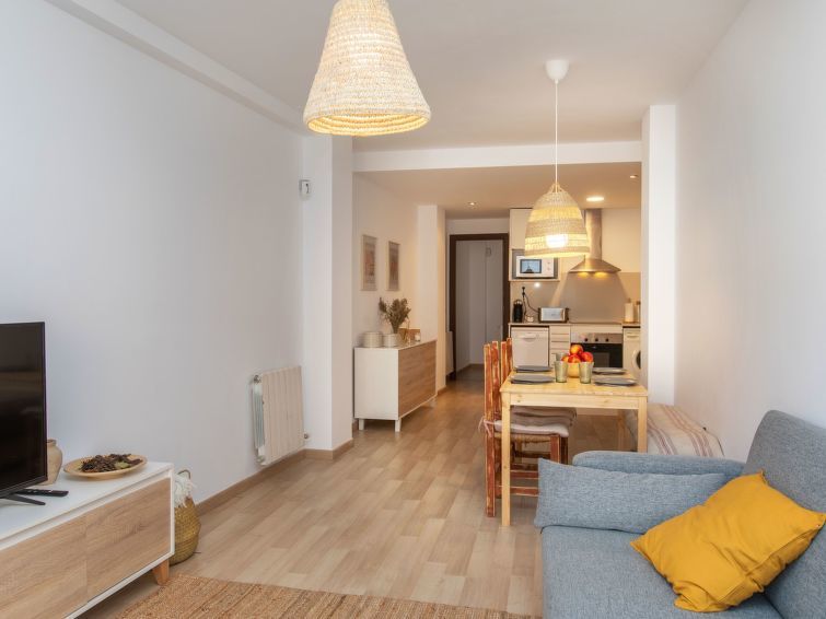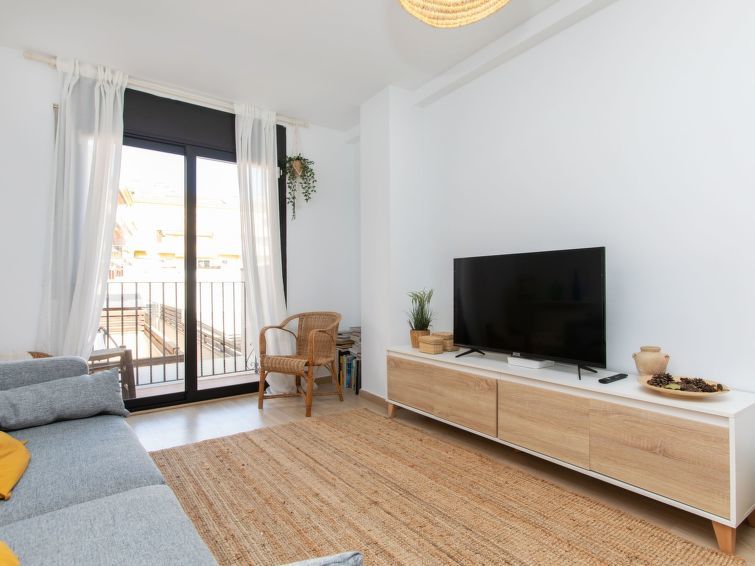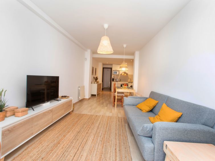 "Costa Brava", appartement 3-kamers 70 m2 op de 2e verdieping. Doelmatig ingericht: woon-/eetkamer met Digitale TV. Uitgang naar het balkon. 1 kamer met 1 2-pers bed (150 cm, lengte 190 cm). 1 kamer met 1 x 2 stapelbedden (90 cm, lengte 190 cm). Open keuken (oven, afwasmachine, 3 keramische glas kookplaten, broodrooster, waterkoker, magnetron, diepvriezer, elektrische koffiemachine). Douche/WC. Klein balkon. Terrasmeubelen. Uitzicht op de plaats. Ter beschikking: wasmachine, strijkijzer, kinderstoel, kinderbed, haardroger. Internet (Internet (WiFi), gratis). Parkeerplaats. Let op: TV alleen ES. HUTG062659