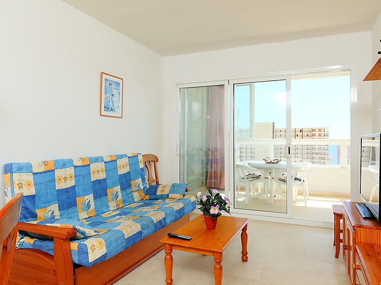 "Gemelos", appartement 3-kamers 58 m2 op de 19e verdieping. Het objekt is geschikt voor 4 volwassenen + 1 kinderen. Licht, eenvoudig en doelmatig ingericht: woon-/eetkamer 15 m2 met 1 divanbed en Digitale TV. 1 kamer 11 m2 met 1 2-pers bed (135 cm, lengte 190 cm). 1 kamer 9 m2 met 2 bedden (90 cm, lengte 190 cm). Keuken (oven, 4 keramische glas kookplaten, broodrooster, waterkoker, magnetron, diepvriezer, elektrische koffiemachine). Bad/bidet/WC, douche/WC. Terras 12 m2. Terrasmeubelen. Uitzicht op het zwembad, de tuin en de plaats. Ter beschikking: wasmachine, strijkijzer, haardroger. Parkeerplaats nr. 304. Let op: TV alleen ES. AT321865BM
