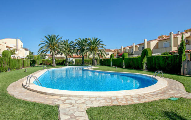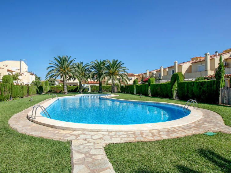 Flatgebouw "El Datiler", van 3 verdiepingen. Buiten de plaats, 2 km van het centrum van Dénia, 500 m van zee. Voor medegebruik: groot, verzorgde tuin (omheind) met gazon en planten, openluchtzwembad (seizoensgebonden beschikbaarheid: 01.Jan.-31.Dec.). Kinderzwembad, buitendouche. Voor alleengebruik: terras (8 m2), openbare parkeerplaatsen 10 m in de straat. Supermarkt, restaurant, bar, café, bushalte 500 m, zandstrand 600 m. De eigenaar accepteert geen jeugdgroepen.