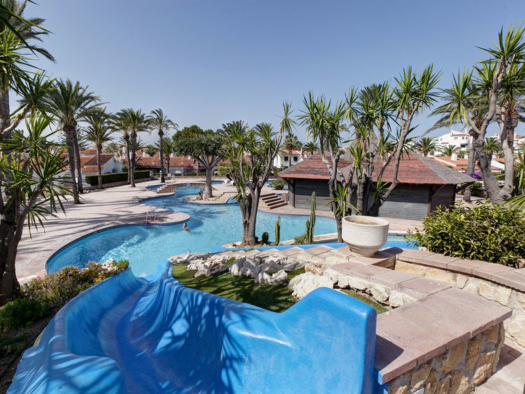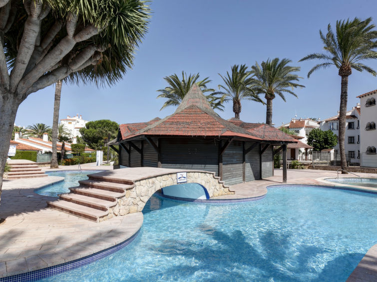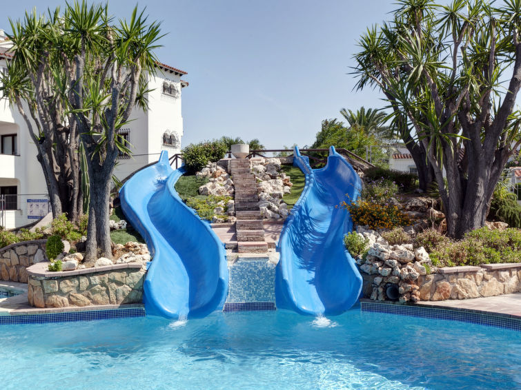 Residentie met 2 zwembaden voor medegebruik. Groot, gezellige residentie "El Palmar 9". In de wijk Las Marinas, 4.5 km van het centrum van Dénia, 400 m van zee, de straat oversteken. Voor medegebruik: openluchtzwembad (35 x 30 m, 80 - 210 cm diepte, seizoensgebonden beschikbaarheid: 01.Jan.-31.Dec.) met trap. Kinderzwembad, glijbaan, kinderspeelplaats, Openbare parkeergarage. Supermarkt 400 m, restaurant, bar, café, bushalte 300 m, zandstrand 400 m. Golfterrein 11 km, tennis 2 km. Let op: geen lift.